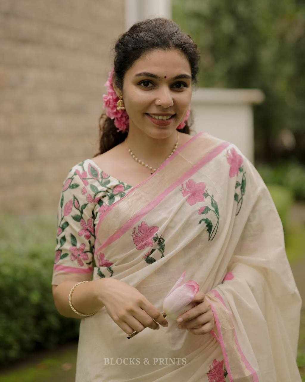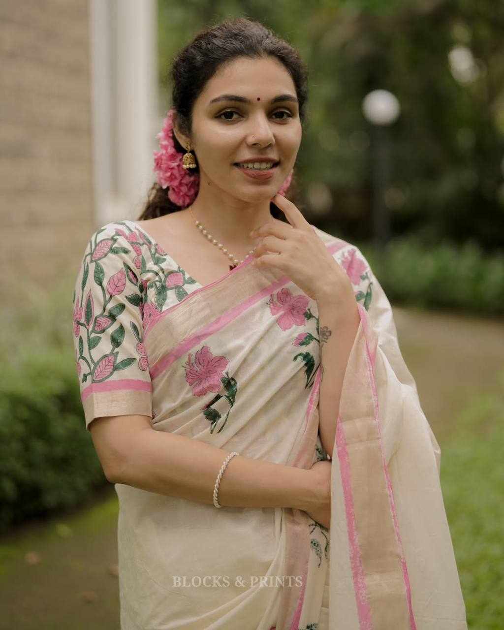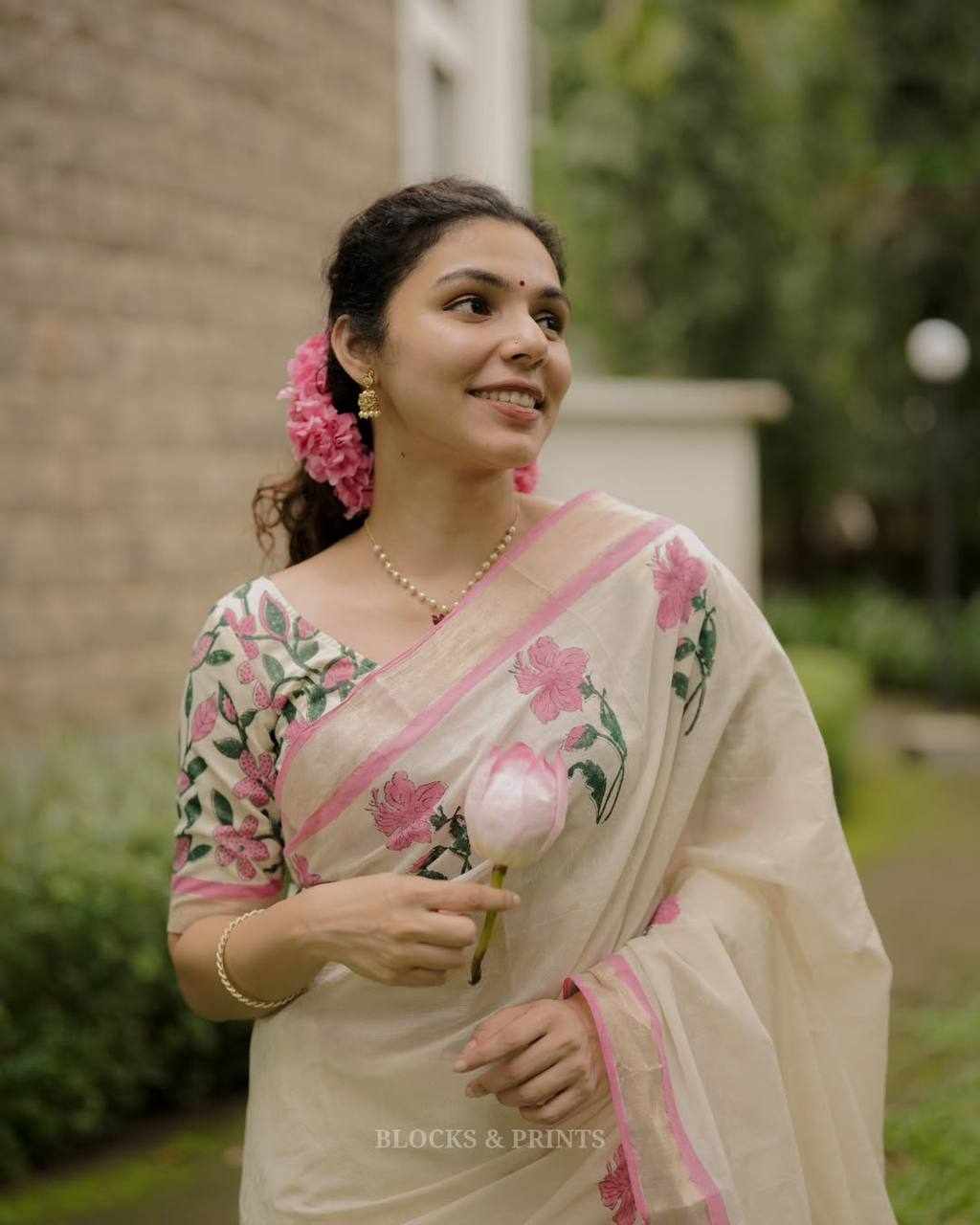 Blouse Fabric: Linen Cotton with matching digital print (same as model wear)