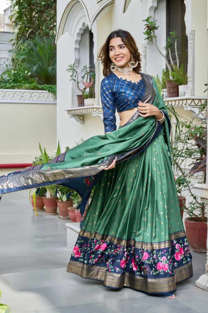 | Name : | PIYU 02-3 Silk Chaniya Choli Green Colour |