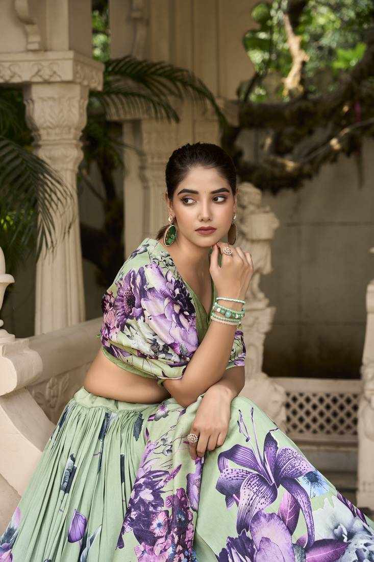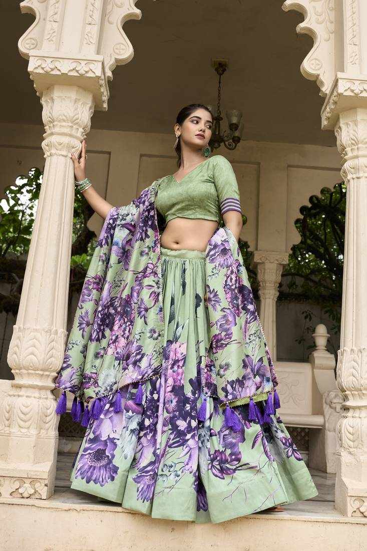 | Name : | PIYU 26-1 Silk Digital print Green Lehnga |